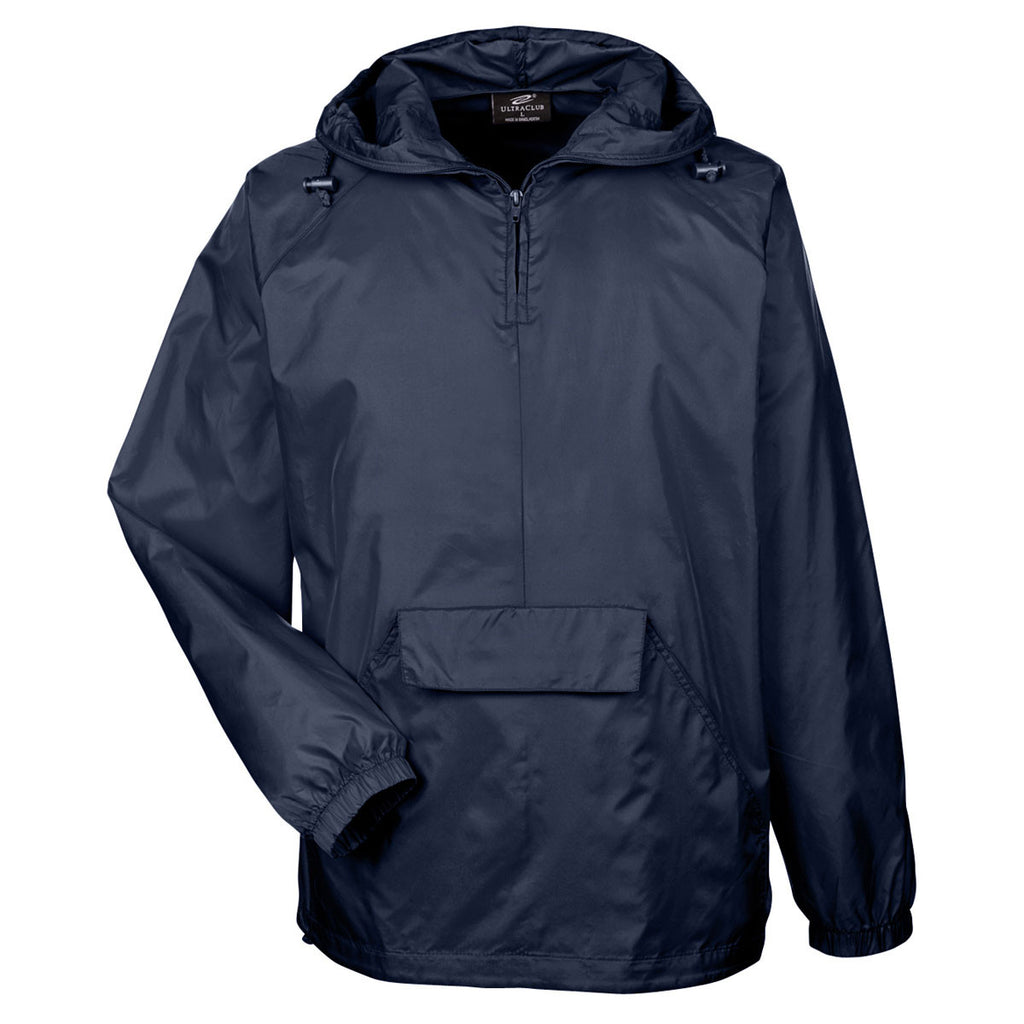 UltraClub Men's True Navy Quarter-Zip Hooded Pullover Pack-Away Jacket