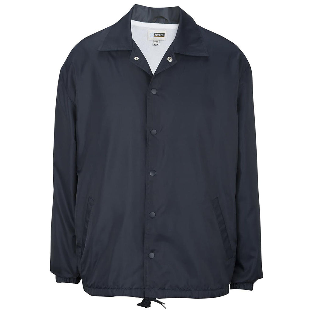 Edwards Men's Navy Coach's Jacket with a custom logo is a great way to support your coach and team. The snap button front means this jacket is easy to take off and put on, even in the middle of the big game. Add a team name or player name and wear it in the stands to show support. Place an order right away.Highlights
