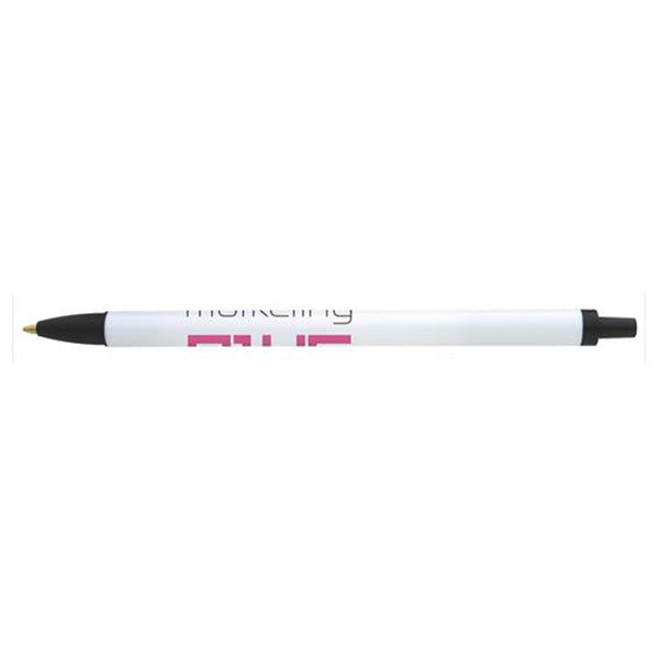Good Value Black with Black Ink Contender Pen with a corproate brand is a cost effective way to showcase your brand or organization for the entire use of the pen. The practical design of this pen with a white barrel and contrasting trim means your name or logo will be the star. Great for giveaways, new clients, or general daily use. Order today.