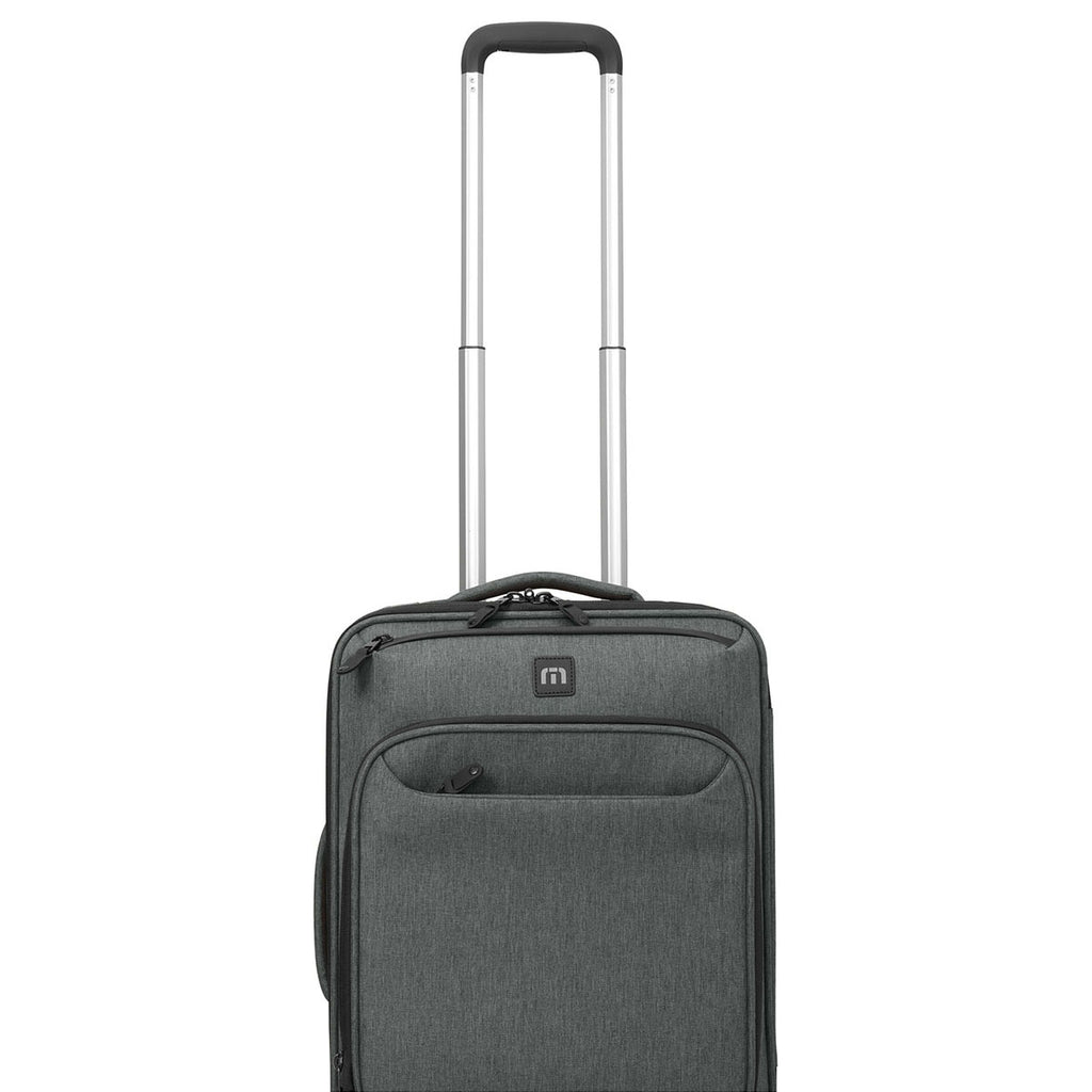 Add embroidery to the TravisMathew Graphite Heather Quad Carry-On Spinner to start your trip off on the right foot. The durable water-repellant finish is great for short term travel to the mountains, the beach, or for business with a top handle and retracting handle so you can carry or roll the bag. Carry on and make your next trip a breeze. Place an order today.This product cannot ship outside of the United States.