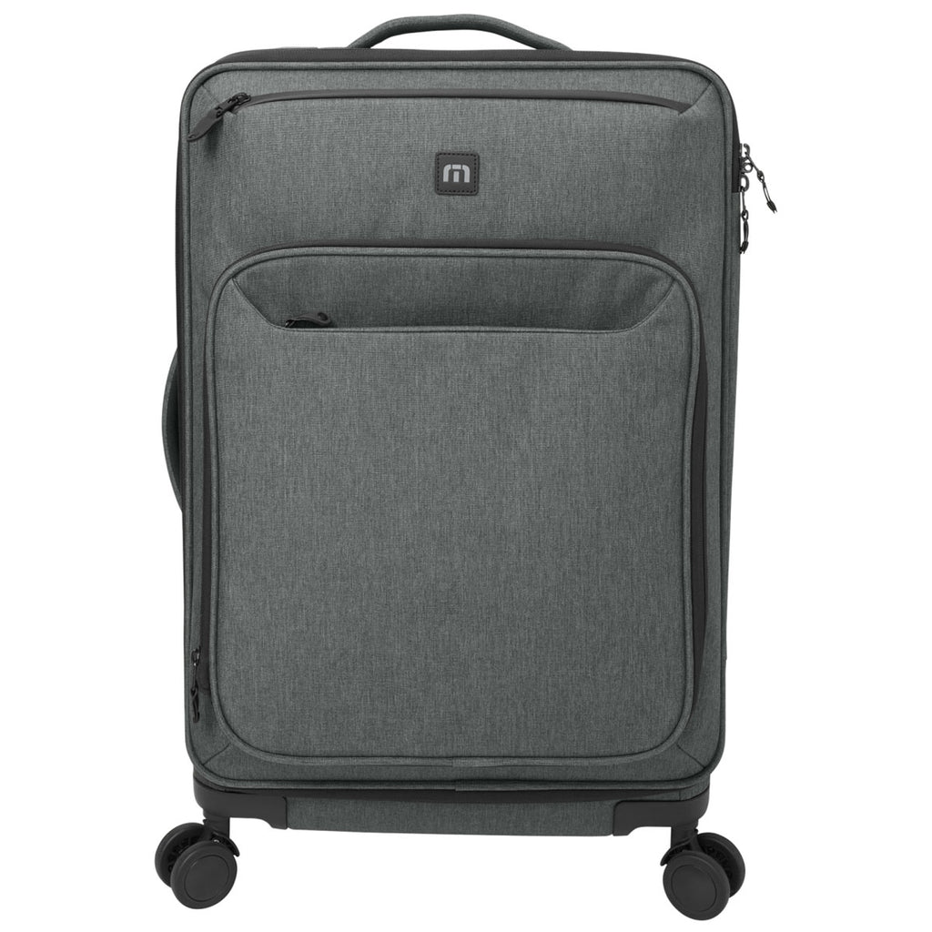 TravisMathew Graphite Heather Quad Checked Spinner with custom embroidery is a stylish way to travel. Perfect for cruises, vacation, and overnights, the Quad checked spinner is water repellant, has a large main compartment with compression straps, side handle, retractable handle, and spinning wheels for stability. Place an order right away.This product cannot ship outside of the United States.