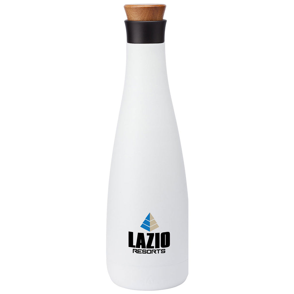 Sleek and sophisticated, the Manna 25 oz. Carafe Steel Bottle is an upscale item that will show off your company's custom logo wherever it goes. It's made from double walled stainless steel so it's able to keep the liquid inside at an ideal temperature all day long. The acacia wood lid provides the perfect finishing touch.The minimum order for this product is 25 pieces.