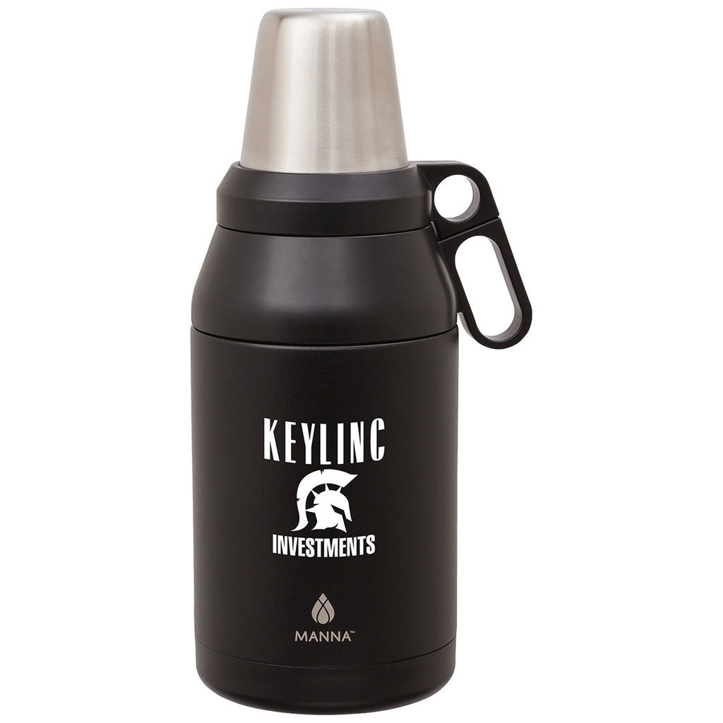 It will be impossible to ignore your custom company logo when it's printed or laser engraved on the Manna 64 oz. Stack Growler. Available in a range of color options, this large beverage container comes with four stainless steel 12 oz. cups stacked conveniently at the top. This is an employee gift everyone will want.