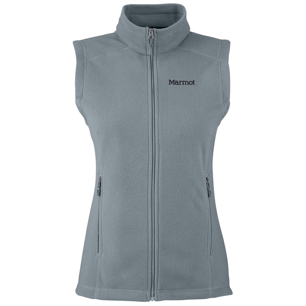 Design a corporate logo for the Marmot Women's Steel Onyx M2 Rocklin Vest to create a unique look for your crew. The vest is made of recycled materials, making it eco-friendly and easy to wear. It is perfect for a uniform look so that everyone is easy to recognize while hard at work. Place an order right away.This product can only ship within the United States and Canada.
