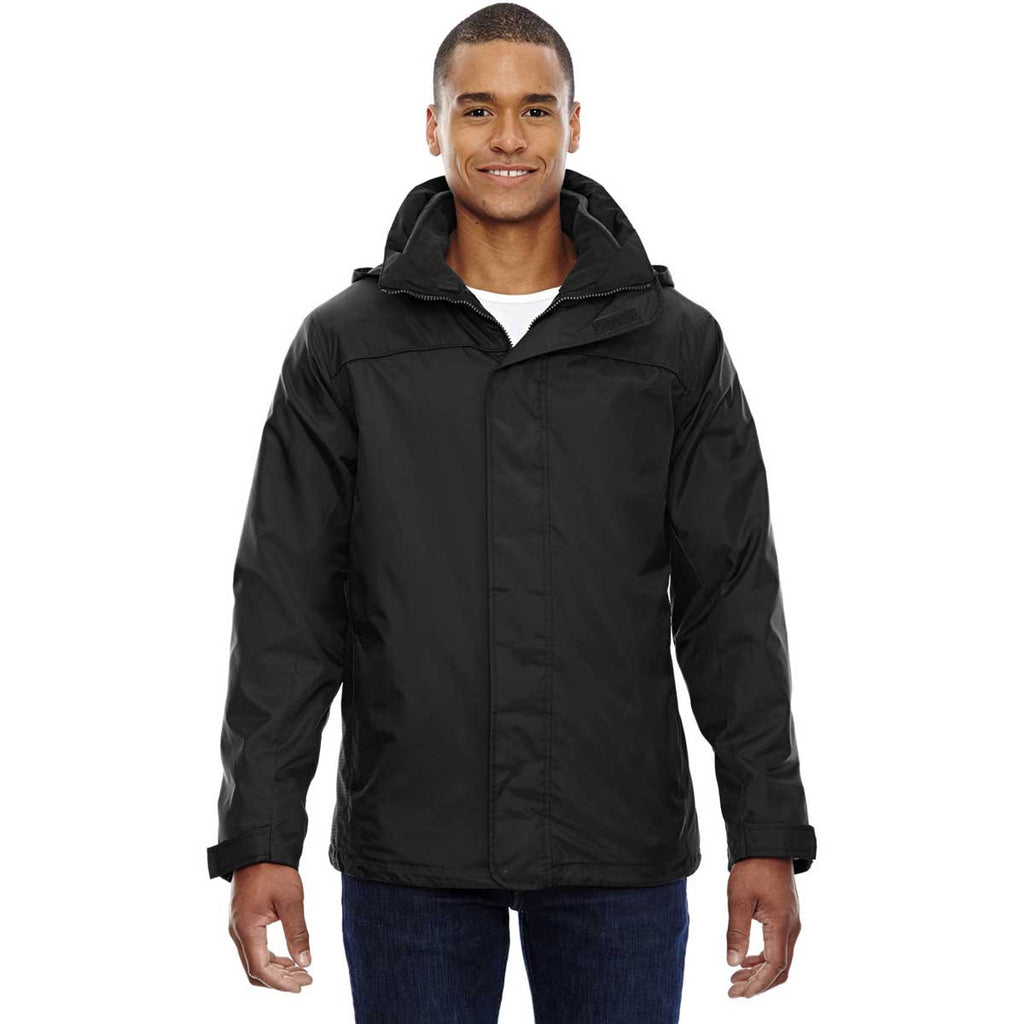 You never sweat the small stuff, whenever you wear the North End Men's Black 3-in-1 Jacket. The 100% polyester mesh in the upper body and hood provides maximum breathability on sweltering hot summer days. Enjoy wearing the completely seam-sealed waterproof shell during inclement weather any time during the year. Brushed tricot lined pockets store everything from car keys to your most important business documents. Add a custom logo to the North End Men's Black 3-in-1 Jacket to promote your company at civic events. Give your employees and loyal customers this affordable outerwear to show your appreciation. The detachable hood conveniently stores in one of the lower reverse coil zippered pockets.Highlights