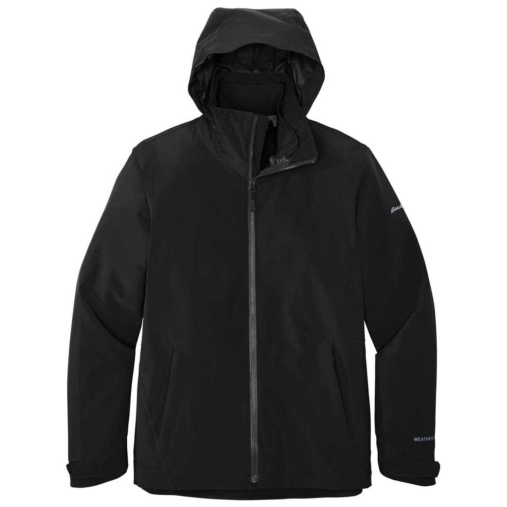 Adapt to life with a custom embroidery Eddie Bauer Men's Black/Storm Grey WeatherEdge 3-in-1 Jacket. Engineered to adapt to weather conditions of all types, this 3-in-1 system is seam sealed throughout to be waterproof, yet breathable. An inner soft shell provides warmth and water repellant technology keep you dry. This jacket is ready for the slopes, but can be-Zipped apart and worn as pieces. Add a company logo to the jacket to give as employee gifts that can be enjoyed year round. An adjustable hood with locking drawcord, adjustable cuffs, and-Zippered pockets create a purposeful jacket that looks great.