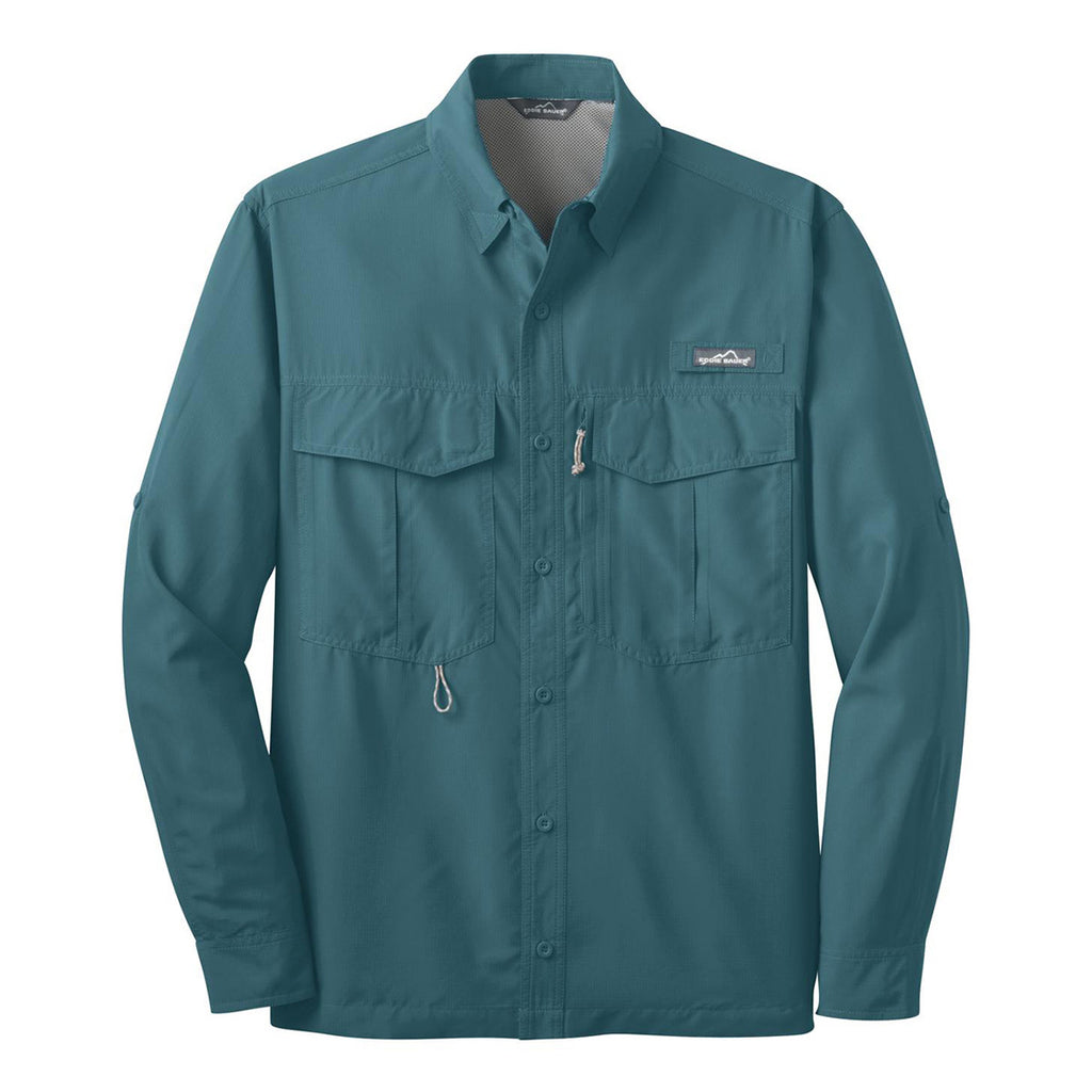 Eddie Bauer Men's Gulf Teal L/S Performance Fishing Shirt