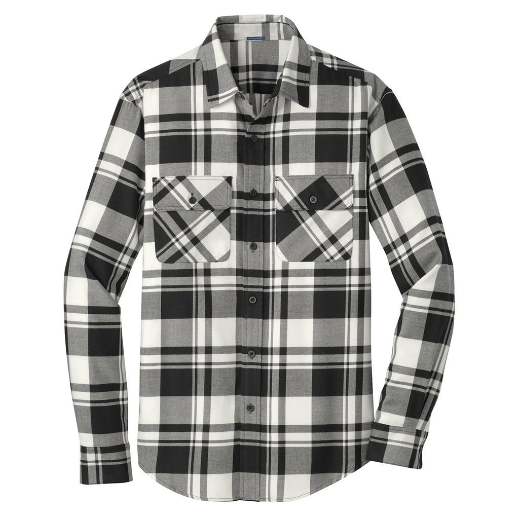 Port Authority Men's Snow White/Black Plaid Flannel Shirt