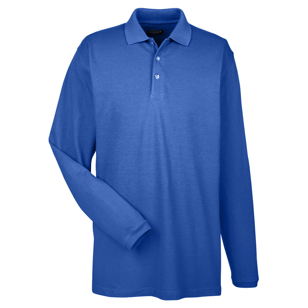 UltraClub Men's Royal Long-Sleeve Classic Pique Polo