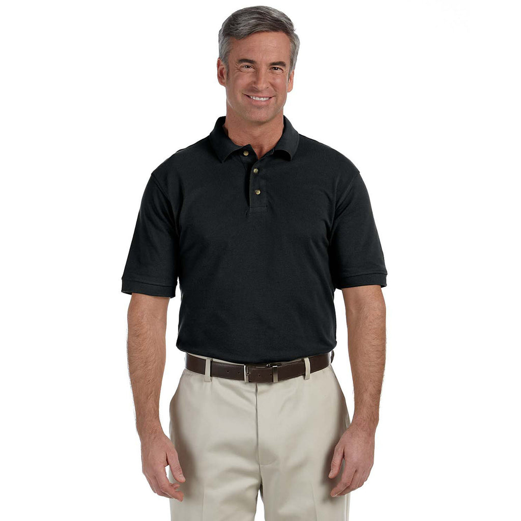 Harriton Men's Black Tall 6 oz. Ringspun Cotton Pique Short-Sleeve Polo