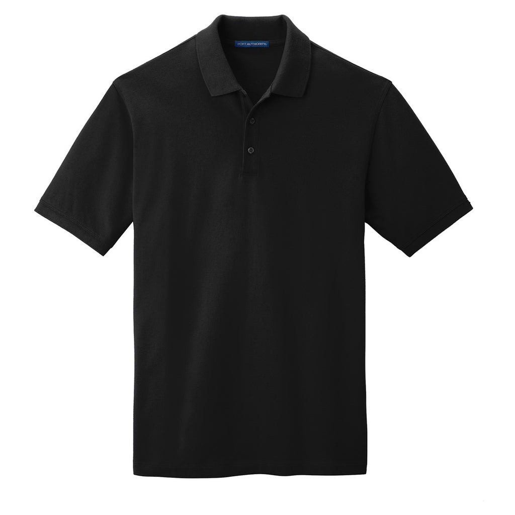 With the logoed Port Authority Men's Black Tall Ezcotton Polo, you ensure the tall members of your team enjoy a fashionable corporate shirt. One-hundred percent cotton pique feels comfortably smooth against the skin to keep you feeling energetic all day long. The collar resists fading and wrinkling to present a professional appearance at business conferences. Updated to fit your taller employees, the sleek polo includes a flat knit collar and cuffs that exude style. Side vents present a visually appealing look, while circulating air to cool the body. Attach your corporate logo to the large imprint area to get the word out about your products and services.Highlights