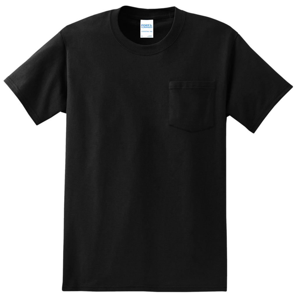 The Port & Company Men's Jet Black Essential Pocket Tee is a classic t-shirt that will make sure your brand's custom logo or design always gets the attention it deserves. On the chest, a pocket adds extra visual impact to this wearable piece, which is made from a comfortable, breathable fabric.Highlights