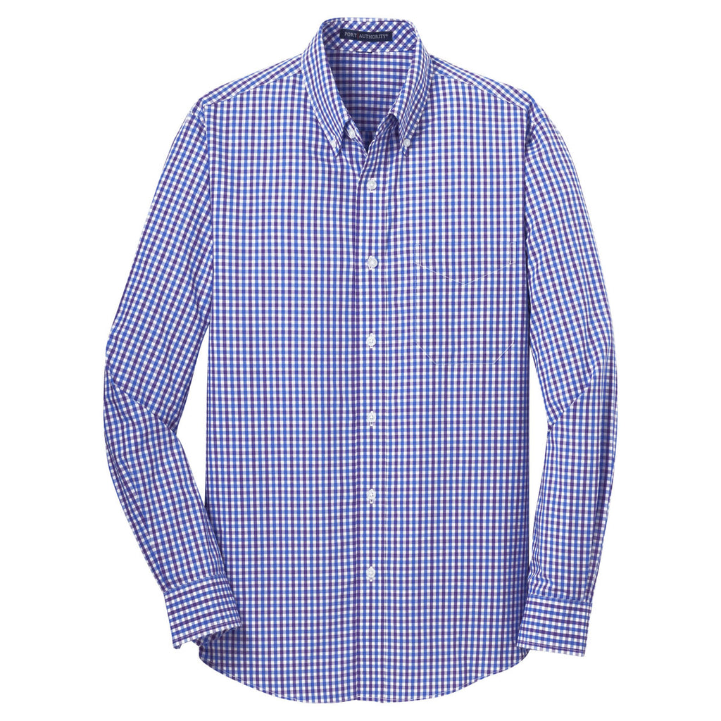 Conveying a sense of atmosphere and professionalism at the workplace might seem easy...until you start to contemplate what a good employee uniform might really look like. Then you realize there's one key phrase: dress shirts. This Port Authority Men's Blue/Purple Long Sleeve Gingham Easy Care Shirt will provide the corporate apparel you need to create that atmosphere of professionalism. With your company logo affixed to the front, your employees can represent your brand without sacrificing their professionalism or their comfort.