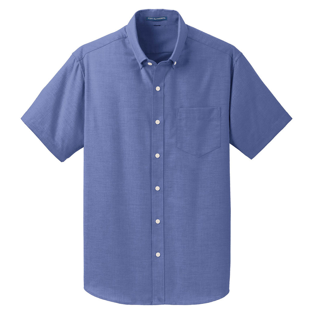 Dress shirts should be three things: stylish, comfortable, and professional. The Port Authority Men's Navy Short Sleeve SuperPro Oxford Shirt fits all three. In fact, you'll find that these goals very much line up with your corporate goals, which is why this shirt is perfect for matching a sense of style with your individual brand. Create your business apparel by using our embroidery process to affix your logo to this shirt.Corresponding Women's Style: Port Authority Women's Navy Short Sleeve SuperPro Oxford Shirt