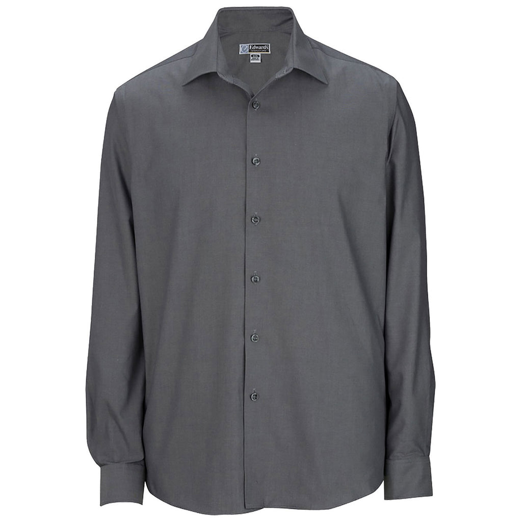 Design a company logo for the Edwards Men's Charcoal Pinpoint Oxford for a look that is professional and fashionable. Ideal for corporate apparel in and out of the office, this lightly striped long-sleeve shirt is a must have in a professional setting. Wear alone as a uniform or pair with a suit to create a custom look that will give clients faith you are doing your best. The wrinkle free fabric is lightweight with a tailored fit and point collar with sewn in stays. The French placket completes the look that can be dressed up or down as needed. Try a custom logo to add to your high-end logoed apparel line or give as a custom gift that will be a welcome addition to any wardrobe.