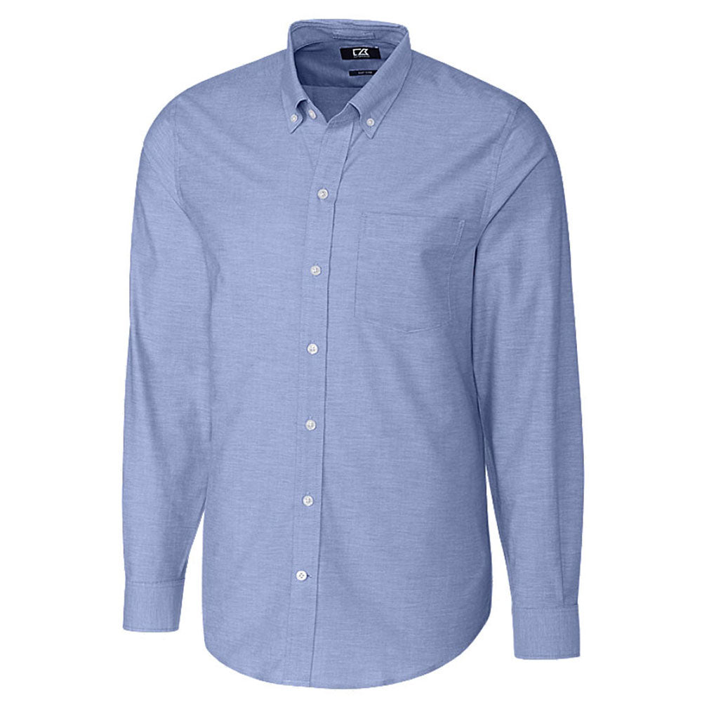 The Cutter & Buck Men's French Blue Tall Long Sleeve Epic Easy Care Stretch Oxford Shirt is the perfect canvas for your company logo. This shirt is suitable for many workplaces and is nice to have under a formal jacket. The design looks great whether tucked or untucked. The cotton and polyester surface includes a button-down collar, a front pocket area, barrel cuffs for a sturdy look, and a striking border around the collar. The full layout adds a strong surface that is easy to wear for any occasion. This adds a nice look on its own, what with its striking stitched layout and its fair color layout no matter what you prefer to wear it in. Order this shirt for your employees to add to their work wardrobes.Highlights