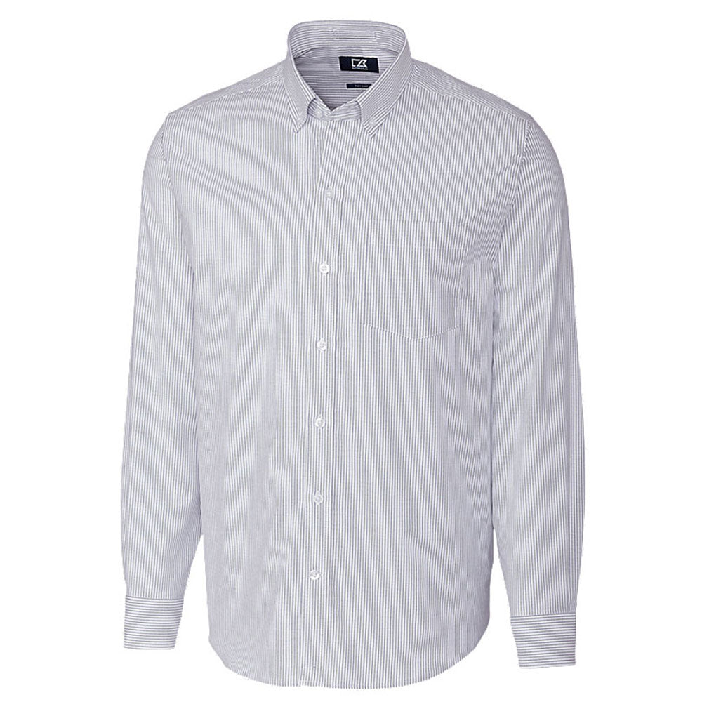 The Cutter & Buck Men's Light Blue Long Sleeve Epic Easy Care Stretch Oxford Stripe Shirt make the perfect striped canvas for your company's custom logo, without being too distracting. The classic look of this outfit makes it ideal for use as a company uniform or for special corporate events. The invisible front pocket is functional for holding any small necessities. The fashionable look of this shirt produces a great style that can be dressed up or down. With the addition of your company's branding, this shirt is the perfect way to market your company in or out of the office.