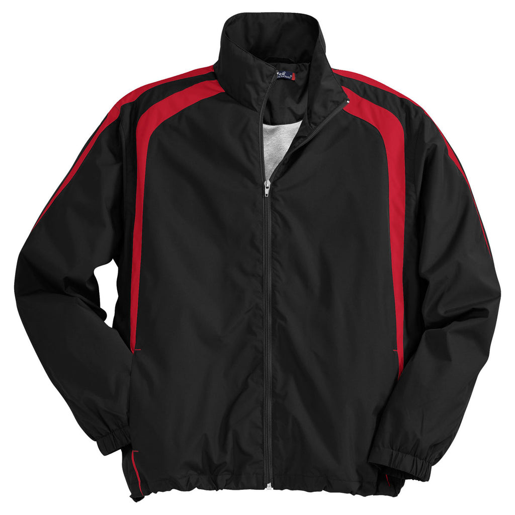 Sport-Tek Men's Black/True Red Colorblock Raglan Jacket