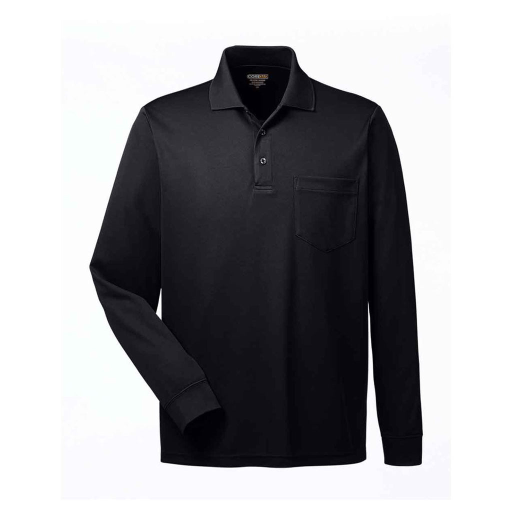Core 365 Men's Black Pinnacle Performance Pique Long-Sleeve Polo with Pocket