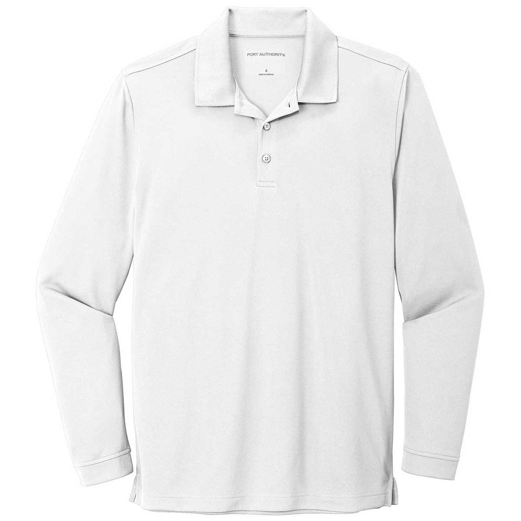 Port Authority Men's White Dry Zone UV Micro-Mesh Long Sleeve Polo