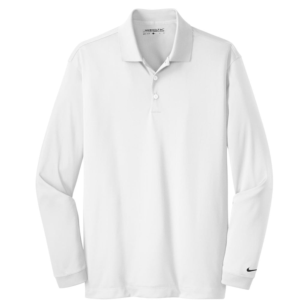 Nike Men's White Dri-FIT Long Sleeve Stretch Tech Polo
