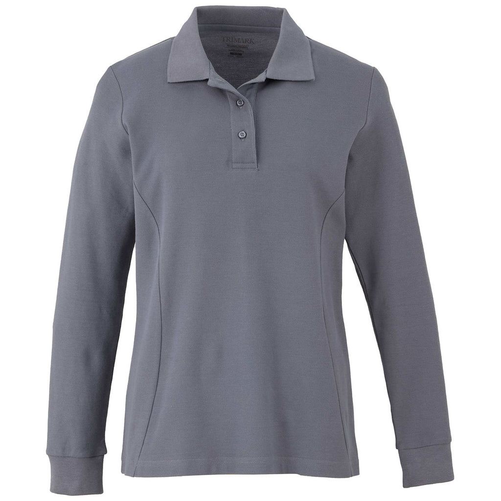 Elevate Women's Steel Grey Palo Long Sleeve 100% Cotton Pique Polo
