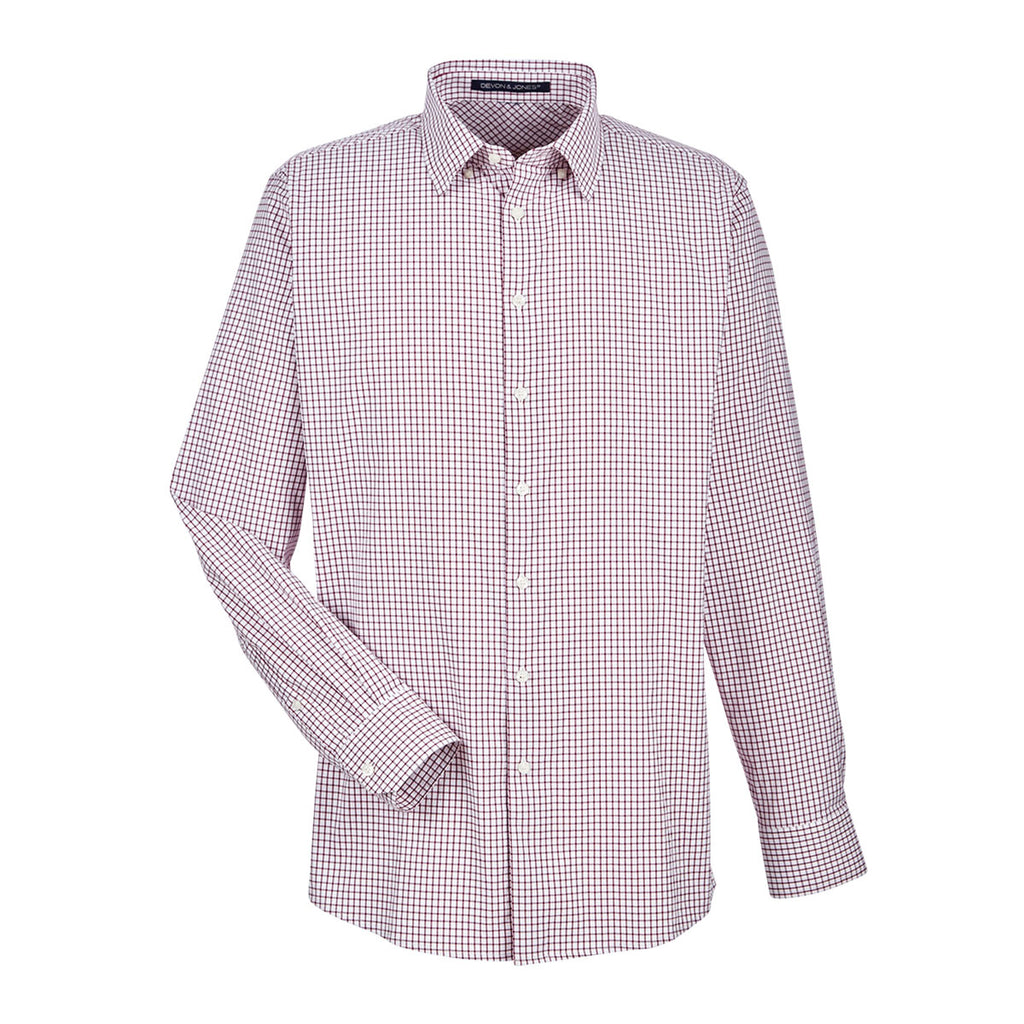 Devon & Jones Men's Burgundy/White CrownLux Performance Micro Windowpane Shirt