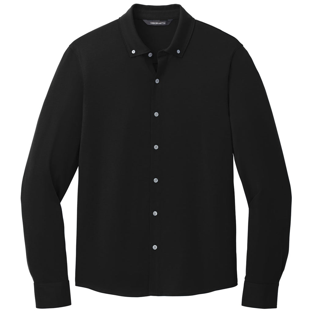 Upgrade your look with the Mercer+Mettle Men's Deep Black Stretch Jersey Long Sleeve Shirt with a corporate logo. The long-sleeve button up is perfect for the office but can transition easily to a night on the town. Made of lightweight jersey with stretch, this versatile shirt is a true must-have. Place an order right away.Highlights
