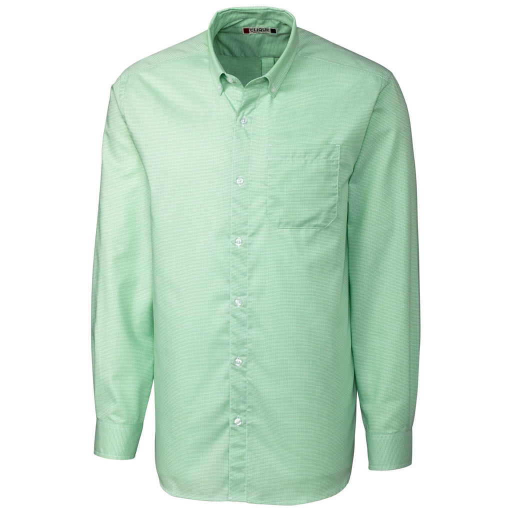 Clique Men's Sea Green/White Long Sleeve Granna Stain Resistant Houndstooth Shirt