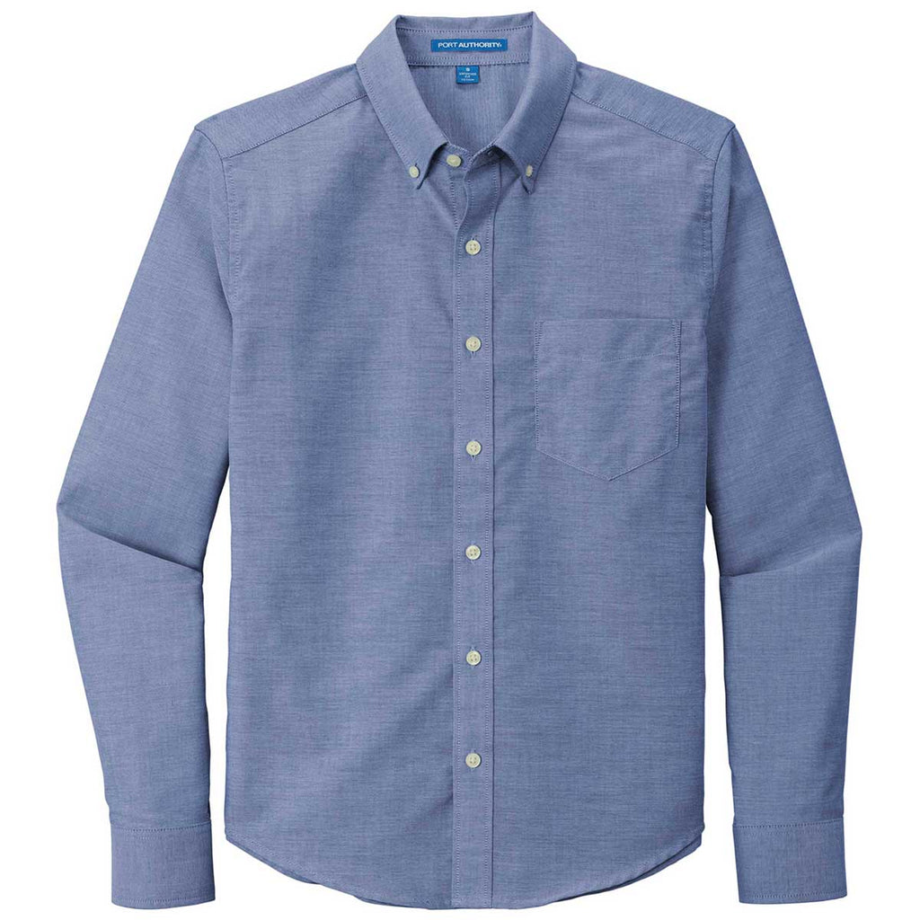 Enjoy untucked custom comfort in a classic style with the Port Authority Men's Navy Untucked Fit SuperPro Oxford Shirt. Choose a company logo to add to these tried and true oxfords to use as a company uniform shirt or simply to add to your own wardrobe. The slimmer fitting oxford is made to be worn untucked while remaining professional. Perfect as an end of the year gift or employee gift, these shirts are wrinkle free and designed to resist and release stains to help maintain the professional look whether at an all day corporate event or hosting a backyard BBQ.Highlights