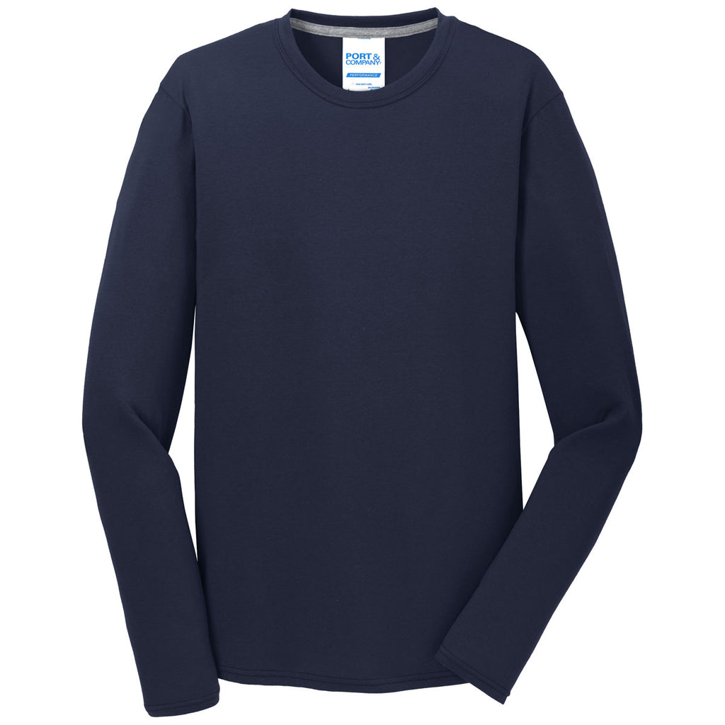 Port & Company Men's Deep Navy Long Sleeve Performance Blend Tee