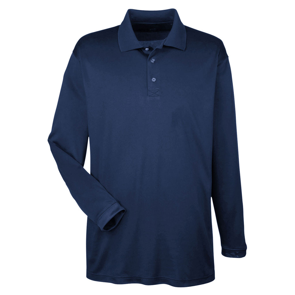 UltraClub Men's Navy Cool & Dry Sport Long-Sleeve Polo