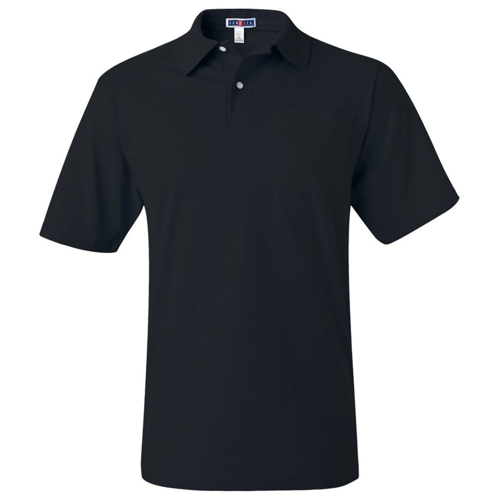 Jerzees Men's Black Spotshield 50/50 Polo With Pocket