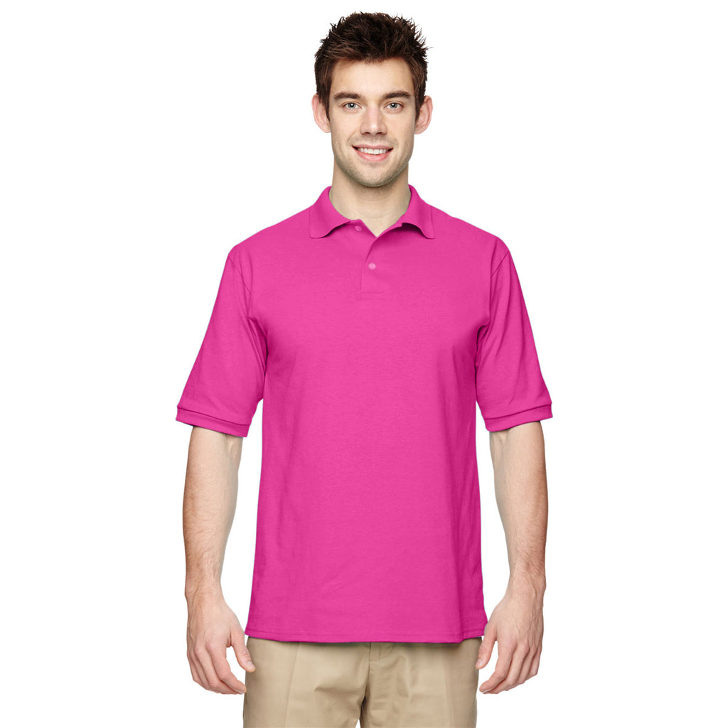The Company Logo Jerzees Men's Cyber Pink 5.6 Oz. Spotshield Jersey Polo Combines Comfort And Cool Into One Exceptional Collared Shirt. Choose From 26 Different Color Options To Find One Which Looks Perfect With Your Corporate Logo Embroidery. Features Of This Short-Sleeve Shirt Include A 50/50 Cotton/Polyester Blend Material (The Oxford Version Is 47/53 Cotton/Polyester), Two-Button Closure, Spotshield Stain Resistant Treatment, Tagless Label, Rib Knit Sleeve Bands, And Much More. This Shirt Is The Perfect Gift To Hand Out At Upcoming Corporate Gatherings, Such As Golf Events And Recruiting Events, Or To Give To Employees As Corporate Apparel For Casual Fridays At The Office.Highlights