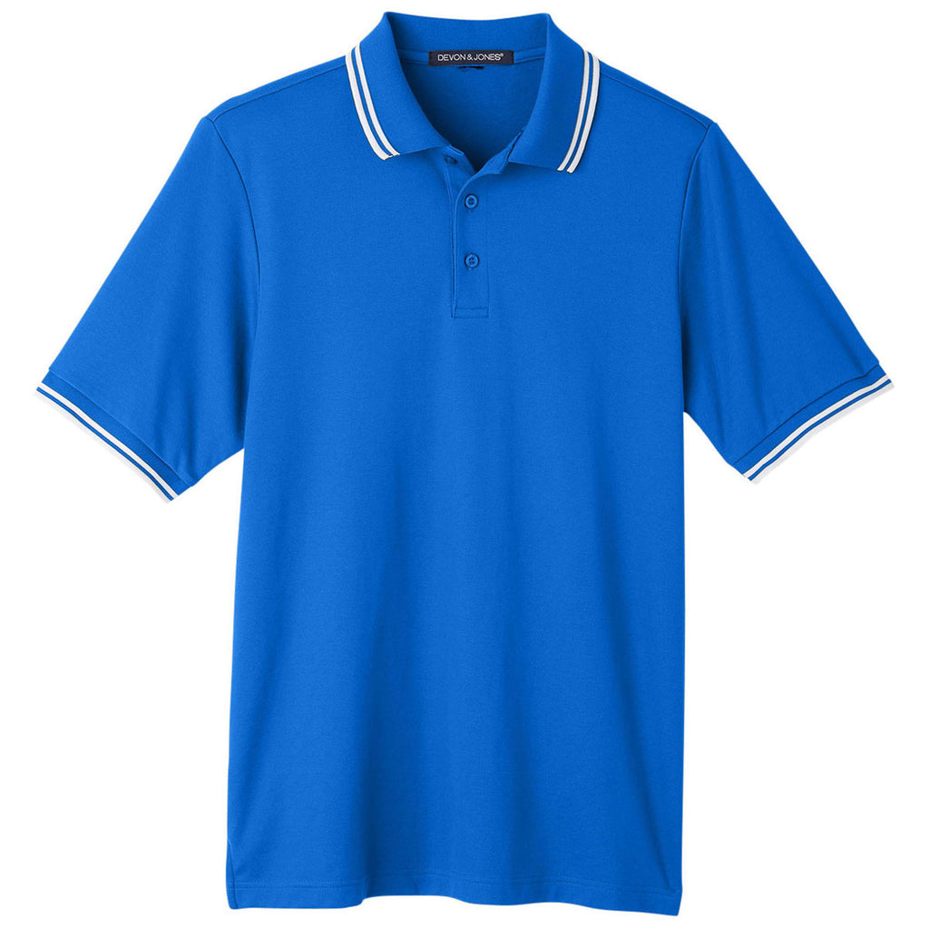 Devon & Jones Men's French Blue/White CrownLux Performance Plaited Tipped Polo
