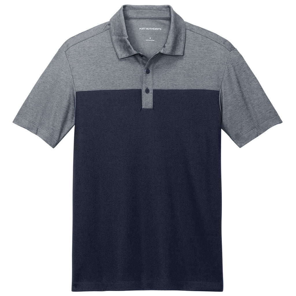 Port Authority Men's River Blue Navy/ River Blue Navy Heather Fine Pique Blend Blocked Polo