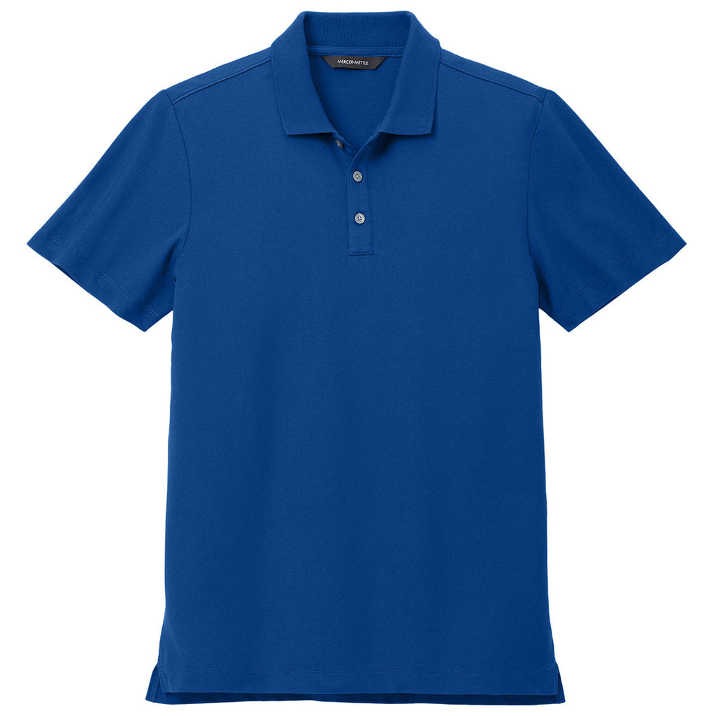 Create a corporate logo for the Mercer+Mettle Men's Blue Note Stretch Pique Polo to enjoy an office worthy look for everyone from board members to the lowest ranking employees. The lightweight polo with 3-button placket, anti-curl collar, and side vents offers a high-end look with a budget-friendly price. Place your order today.