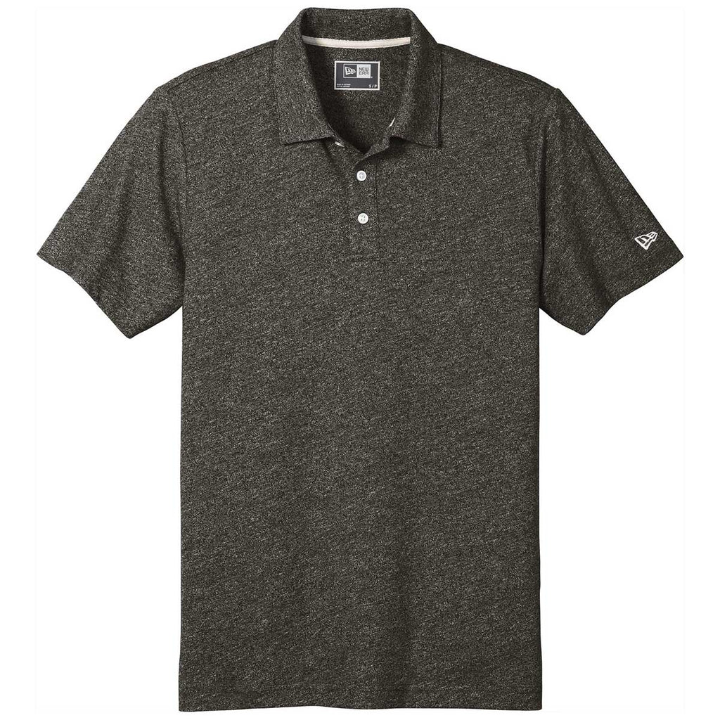 Look and feel great in a custom embroidered New Era Men's Black Twist Slub Polo. Made of a 60.40 cotton rich poly blend, this polo is a must have as company uniforms. Add a corporate embroidery to create unique employee looks or a custom logo to use for corporate events. The heat transfer label means no tags to deal with and the New Era flag logo demonstrates quality. A three button placket and self-fabric collar create the iconic polo look that can be worn for both fun and function. Side vents mean movement is not limited so employees can stay on task.