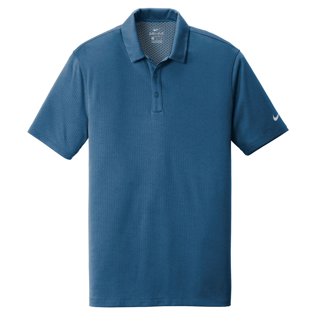 With an area for embroidery, the company logoed Nike Men's Court Blue Dri-FIT Hex Textured Polo represents the ultimate gift to hand out to your employees before a big golf tournament. Designed with 100% polyester, the textured polo feels smooth on the skin and withstands the punishment delivered by active lifestyles. Wear the polo to a professional networking event and put it on before a daylong bicycle ride. Moisture wicking performance prevents Mother Nature from dampening the day. Add a custom logo on the large imprint area to let everyone know your company sells the finest products and services.