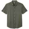 Choose an embroidery design for the OGIO Men's Drive Green Heather Gravitate Full-Button Polo to create a unique look that can serve as corporate apparel during the day paired with a jacket and easily transition into after hours wear so you can hang out with friends. Add a custom logo for personal styling or add to your logoed apparel selections. The poly material has stay cool wicking technology with a modern, polished look. Choose a company logo for the short sleeved polo with button up front to use as employee apparel for a range of professions.