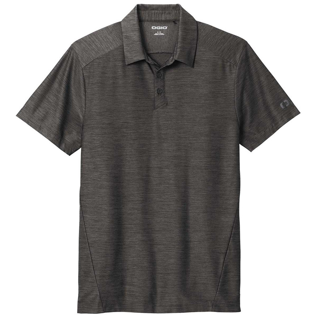 Classic comfort can be found in this updated custom OGIO Men's Blacktop Slate Polo available in a variety of sizes. The sophisticated tonal heather polo offers moisture wicking and stretch for range of movement with a polished look. Perfect for a company logo this polo would make an excellent company uniform or even employee gift. The self-fabric collar and angled 3-button placket has flat matte silicone buttons that create a professional look. Set in sleeves with open hems mean mobility will not be limited, even if hard at work all day.