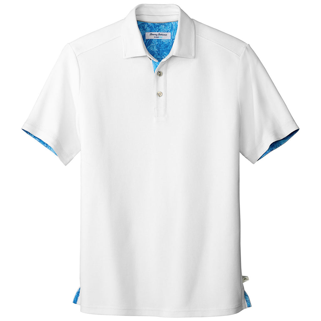 The Tommy Bahama Men's Bright White 5 O'Clock Polo is made from a luxuriously soft fabric that will keep you comfortable on the course, the beach, or at after-hours drinks. Add your company's custom logo or design to this pique fabric polo to create a professional look that will take your team absolutely anywhere.