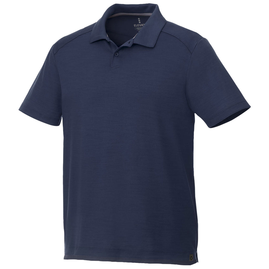 Think outside the box with a custom eco-friendly Elevate Men's Vintage Navy Amos Eco Short Sleeve Polo. This classically styled short sleeve polo has some earth friendly secrets with the 100% recycled polyester and a one of a kind look. Add a custom logo to the polo with asymmetric seaming details and side slits for ventilation to use as a custom gift. Try a company logo to use as employee apparel that is wash and wear, anti-pill, snag resistant, offers UPF protection, has moisture wicking, and feels like soft cotton. Who could ask for more from a simple polo?Corresponding Women's Style:Elevate Women's Vintage Navy Amos Eco Short Sleeve Polo