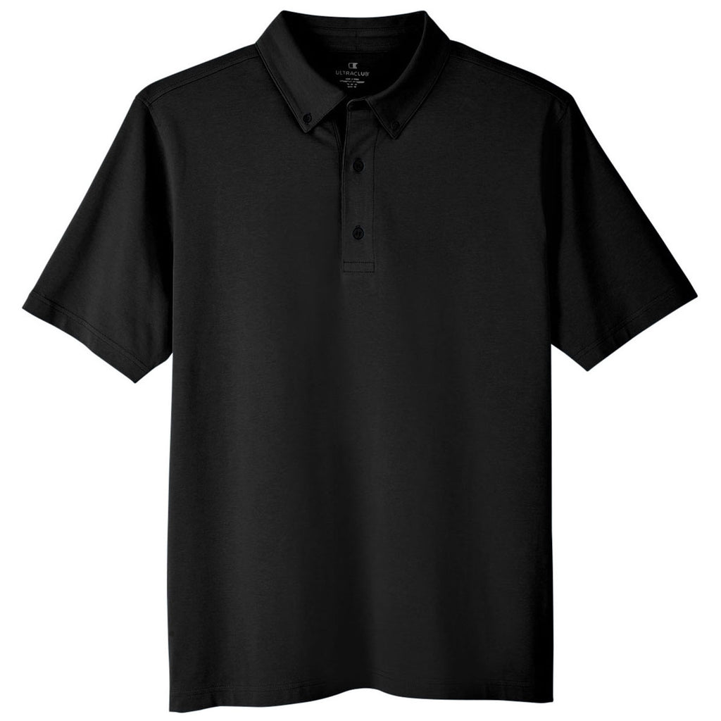 UltraClub Men's Black Lakeshore Stretch Cotton Performance Polo