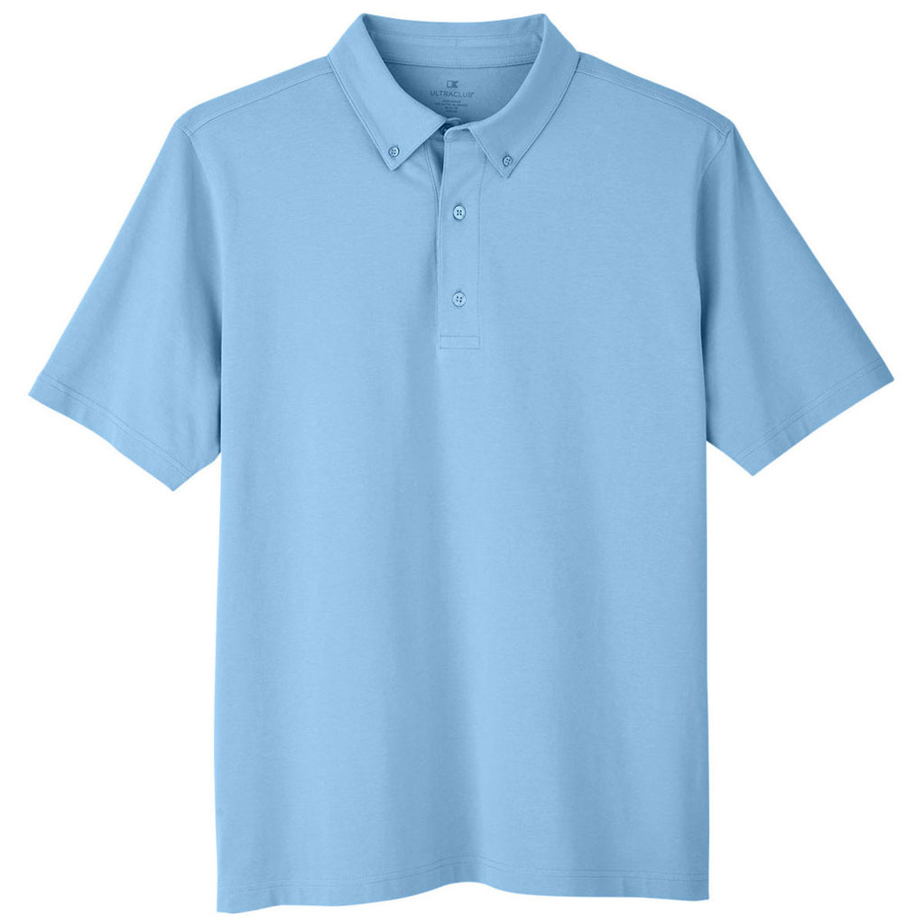 UltraClub Men's Columbia Blue Lakeshore Stretch Cotton Performance Polo