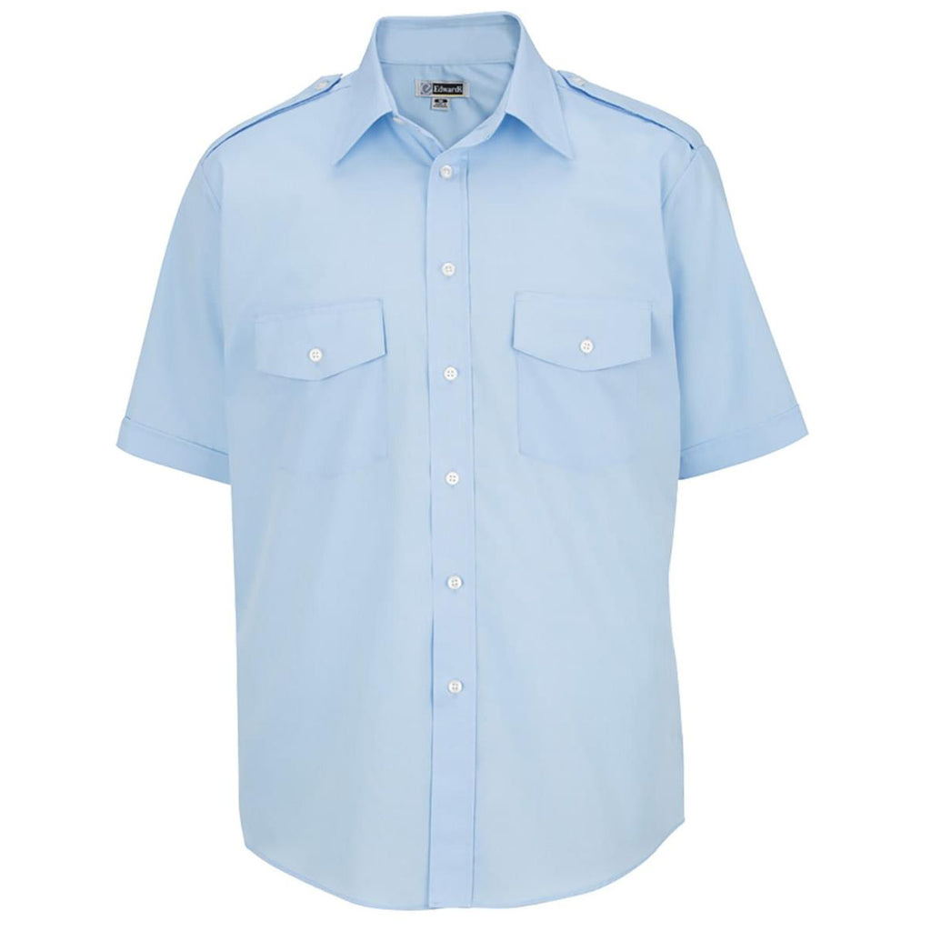 Add a custom logo to the Edwards Men's Blue Navigator Shirt to make your presence known. The lightweight fabric stands up to hard work whether patrolling the grounds, cleaning up after a party, or working as the CEO. Two chest pockets with buttons on the moisture-wicking short sleeve shirt provide room for small items as needed. Place an order today.