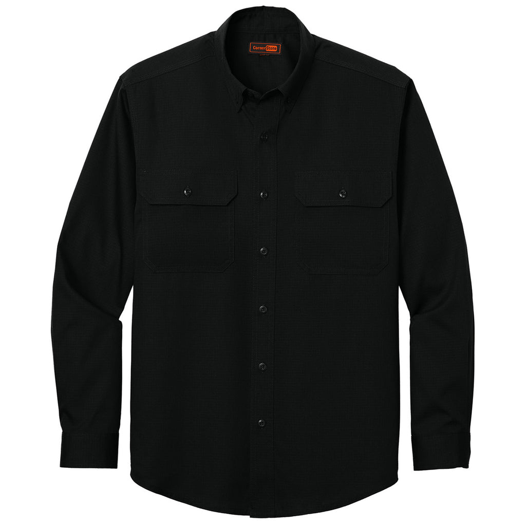 CornerStone Men's Black Long Sleeve Select Ripstop Shirt with a corporate logo creates a professional yet durable look for those with the toughest jobs. Whether a job foreman or the ones getting their hands dirty, this ripstop shirt is a must-have. Stain-release and reinforced stitching make all the difference. Place an order today.Highlights
