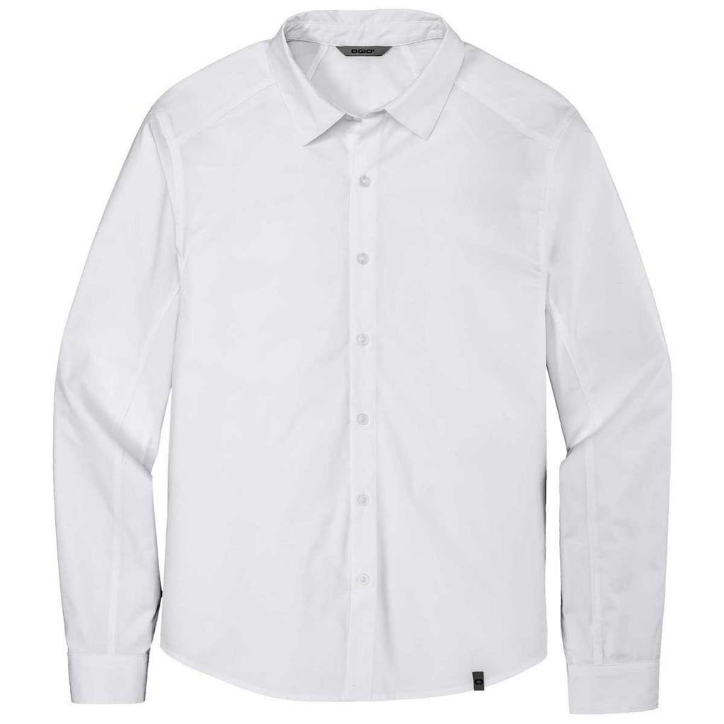 Add embroidery to the already perfect OGIO Men's White Commuter Woven Shirt to take it to the next level. The lightweight cotton, poly, spandex blend is made for the modern commuter. Both style and functionality come together in the simple button-up shirt that is made for travel whether to and from work or across the continent. Add a company logo to use these as employee apparel that will look great all day every day. A custom logo could create a gift idea like no other. Made to be worn tucked or untucked based on preference, this is a shirt every man should have in his closet.