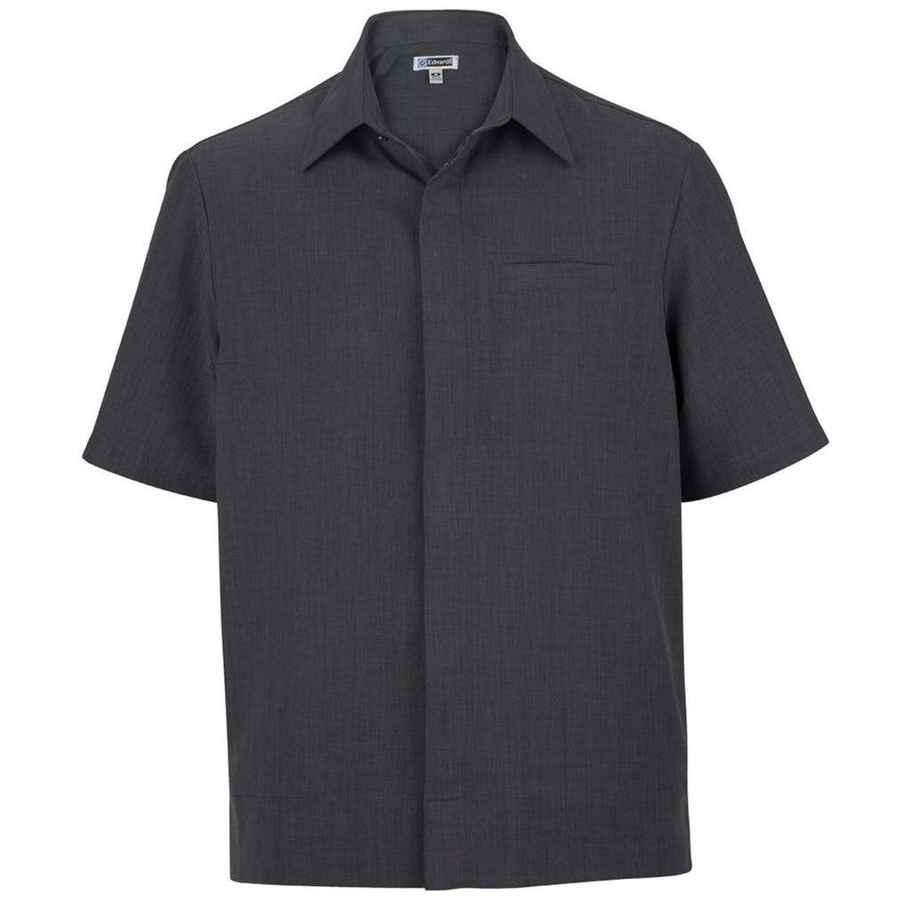 Create custom employee apparel with an embroidered Edwards Men's Steel Grey Batiste Service Shirt in six color variations. Made of 100% polyester, this gorgeously made camp shirt with your company logo would be ideal for those at a spa, restaurants, or even for valets. The short sleeves, chest pocket, and wide straight bottom hem with side vents mean this shirt is easy to wear and looks great no matter the type of work. Add a design or logo and use these as hospitality apparel for big events or every day wear. Soil resistant, wrinkle resistant, and moisture wicking properties mean this shirt will stand up to a hard day's work.Highlights