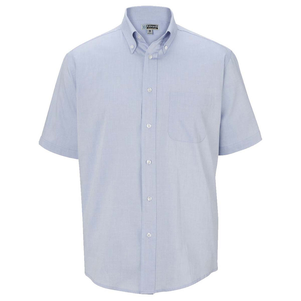 Nothing shows professionalism like a custom Oxford and Edwards Men's Blue Pinpoint Oxford Short Sleeve Shirt is top of the line. The cotton rich polyester blend is a dress shirt that can carry your company logo as a corporate uniform or every day wear in the office. The button-down collar, left chest pocket, and back box pleat allows you to do all you need in a typical day. Create a professional embroidered look for employee apparel or simply order several with a custom logo to keep on hand when needed for big events. Fully machine washable, these button downs are always the right choice.Highlights